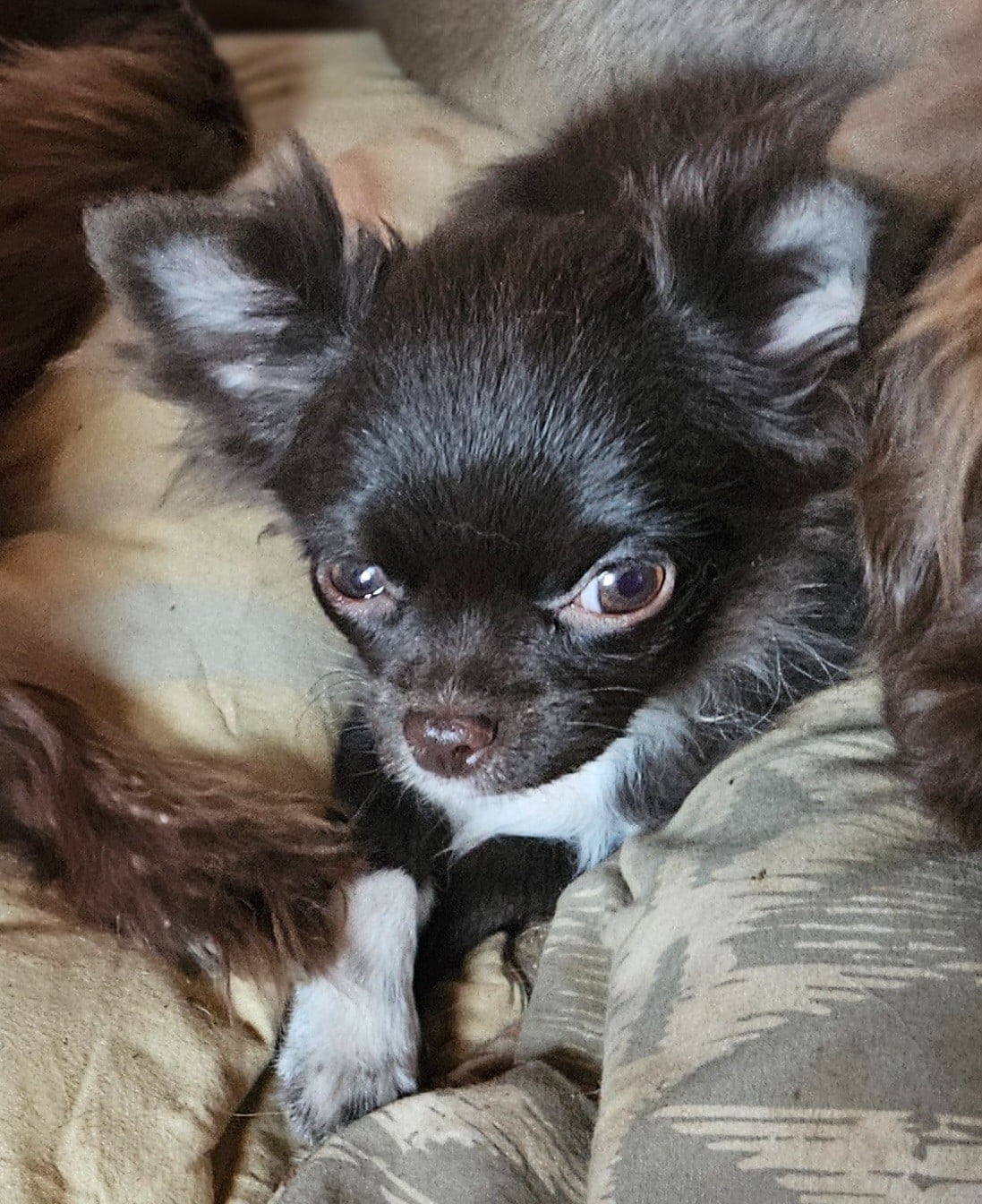 Airos est doux, câlin et calme. Il aime explorer, jouer, très sociable et affectueux. Très bonne initiation à la propreté. Il a une très jolie fourrure avec une très belle répartition de couleur et une bonne bouille à bisous. Bien typé sans excès. Dentition, rotules, testicules, tout est en place. Certificat de bonne santé, LOF, vaccins faits pour un an, c'est un petit chien clé en main.