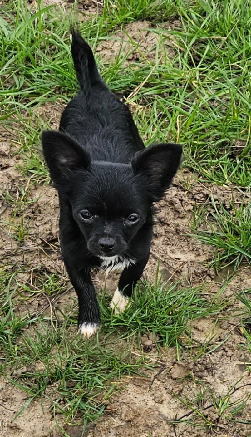 Tendre et douce tout en étant bien présente et expressive Aunyx est une jolie puce très élégante avec sa couleur noir intense et ses bouts de pattes blancs. Elle ravira les personnes qui désirent une petite chienne pour partager des moments de complicité et de câlins. Elle sera de gabarit plutôt petit voir moyen. En grandissant le caractère de cette petite miss se confirme, elle aime inconditionnellement les bisous, les câlins, regarder la télé dans les bras, qu'on lui parle... Une compagne de tous les instants qui sait faire sa vie de son côté si on est occupé. Sa mue de bébé ne lui rend pas justice elle est très jolie et aura une belle fourrure sans entretien.